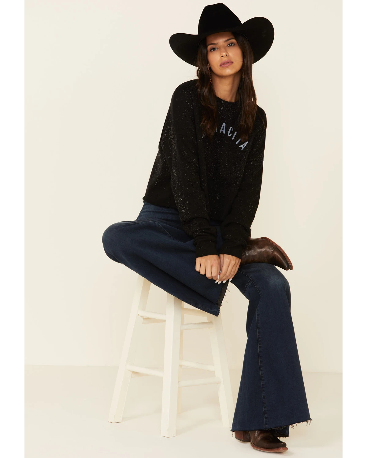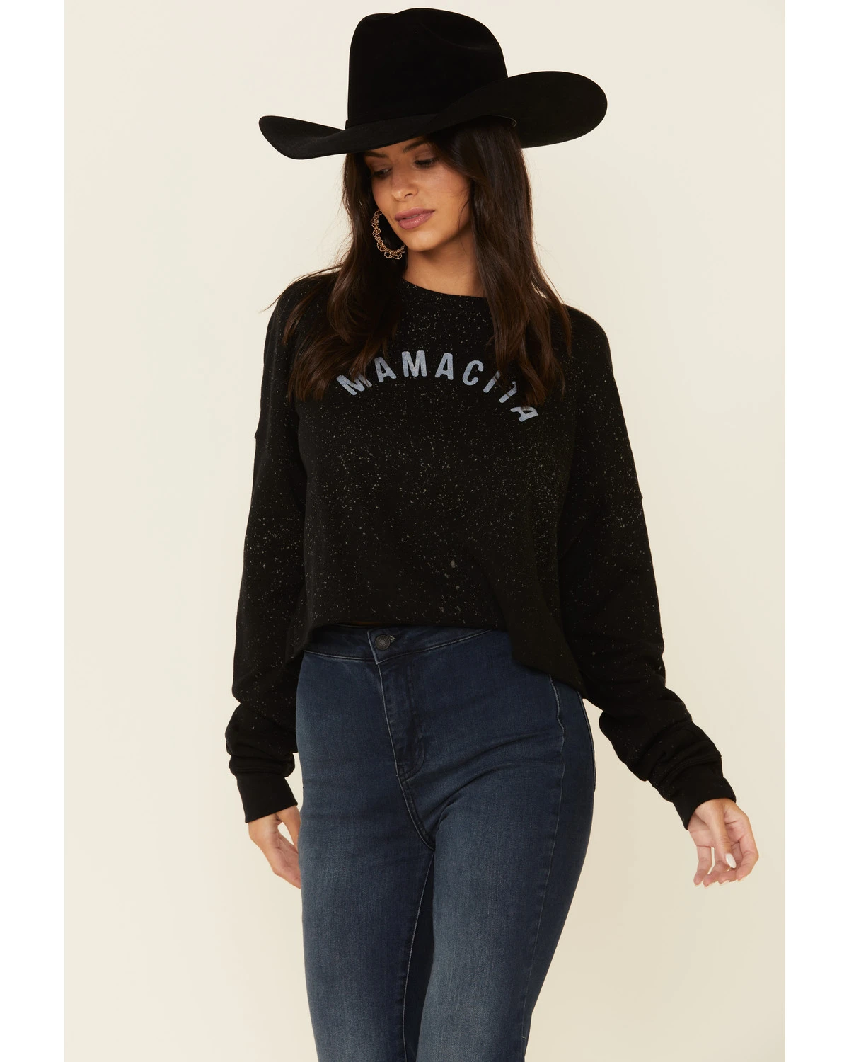 Ruby’s Rubbish Women’s Bleach Splatter Mamacita Graphic Cropped Pullover Sweatshirt